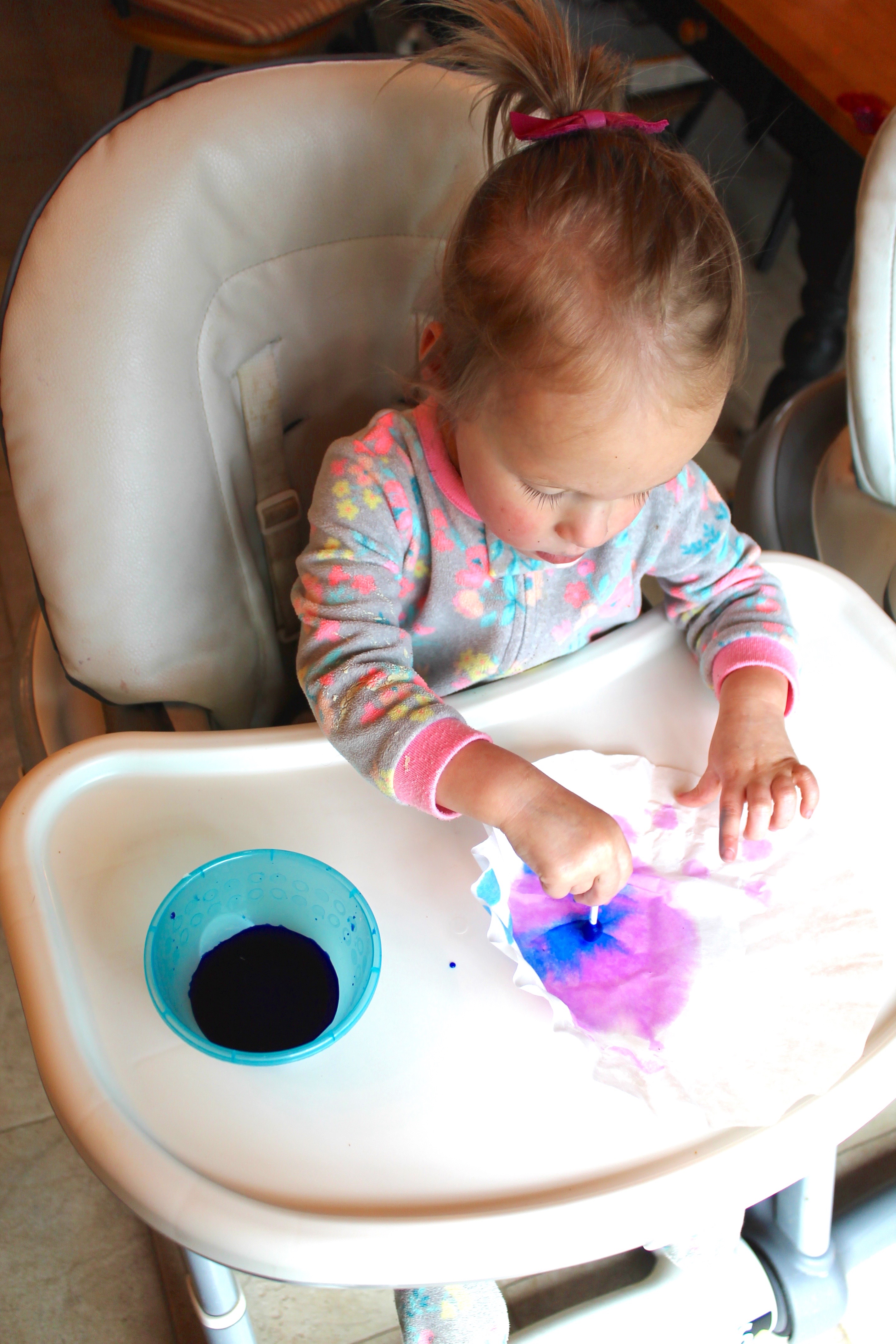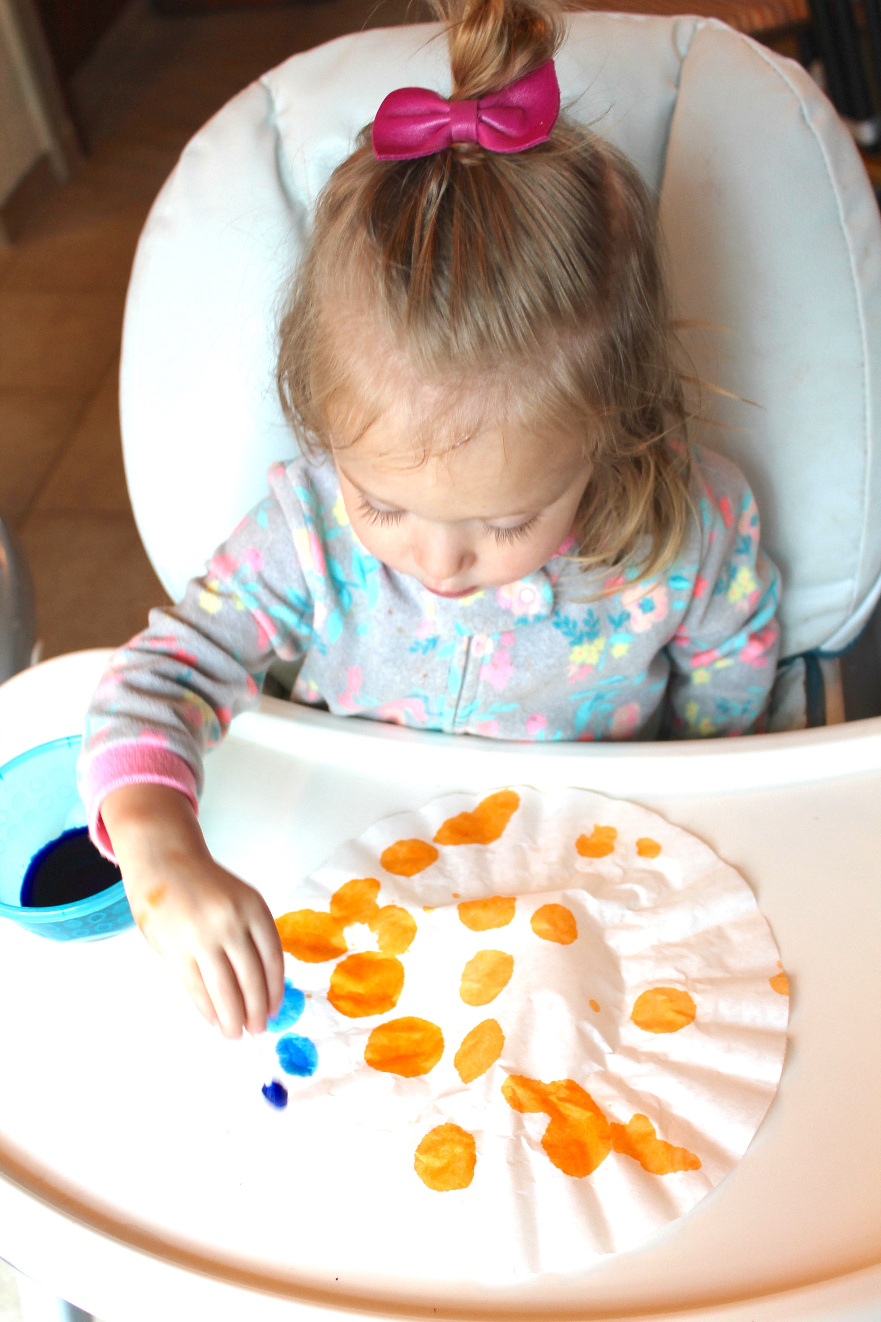 notes: this works best when you put a large drop of liquid watercolors directly on the paper, then use the straw to forcefully blow the color around. my two couldn’t quite get the hang of blowing hard enough through the straw, so we just blew the color around with our mouths. another option would be to pick up the paper and shake around!